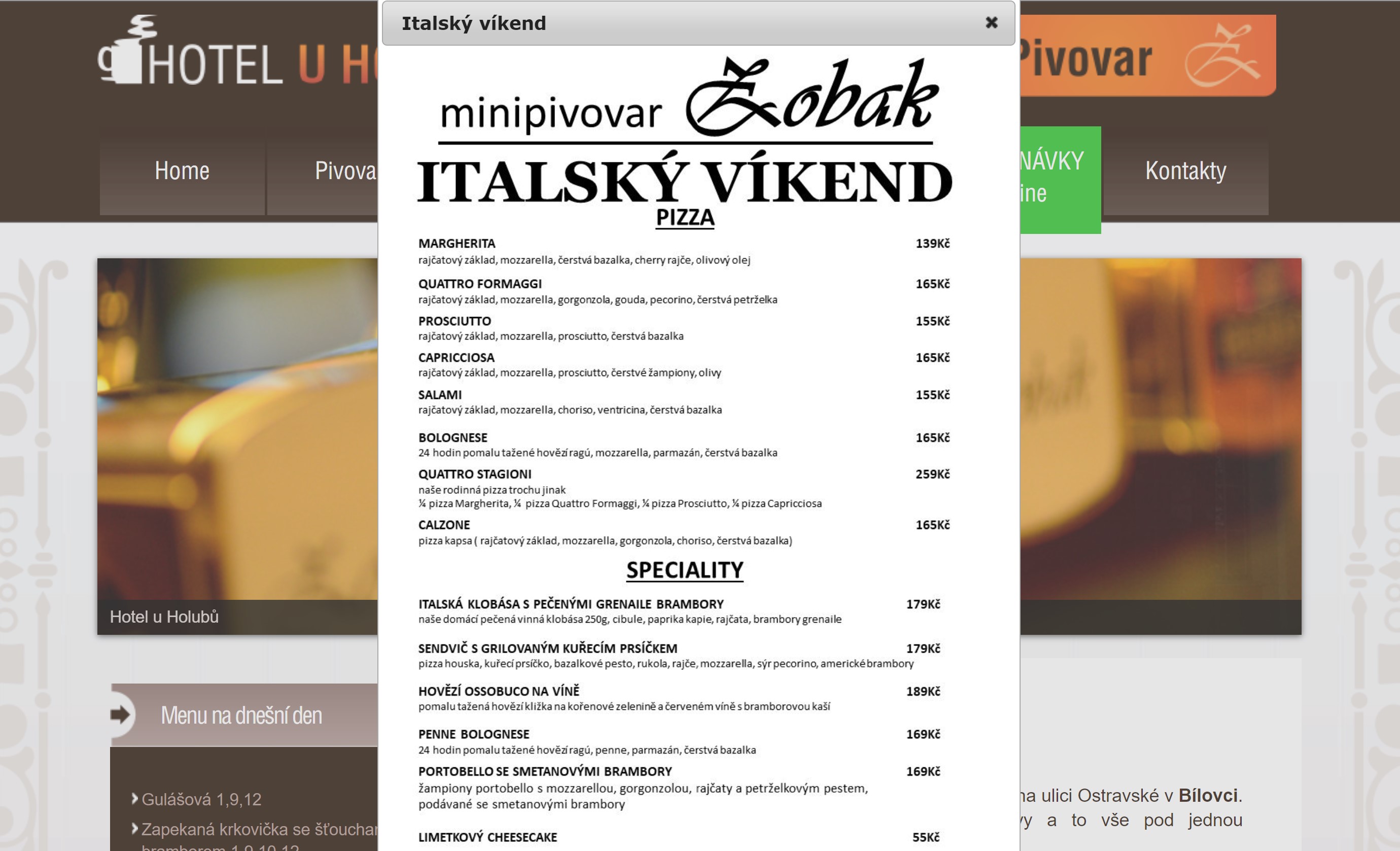 Na Ostravské ulici v Bílovci se nachází sympatický podnik Hotel u Holubů. Kromě hotelu, který figuruje i v samotném názvu, spadá pod křídla celého podniku také restaurace s terasou a vlastní pivovar.
