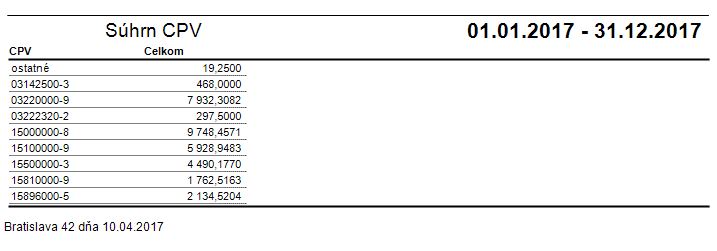 Výkaz CPV vychádza z Obratových súpisiek v aplikácii. To znamená, že na to, aby bolo možné tento výkaz vytvoriť, je potrebné mať povytvárané jednotlivé obratové súpisky. Na základe nich dokáže aplikácia vypočítať hodnoty jednotlivých surovín pre potreby klasifikačného systému verejného obstarávania. Ak potrebujete zistiť stav CPV aj v strede mesiaca, je to možné. Je potrebné vytvoriť obratovú súpisku a následne vytvoriť výkaz CPV. Po tomto kroku je možné obratovú súpisku odstrániť a opätovne ju vytvoriť ako bežne až na konci mesiaca. Výkaz CPV vie aplikácia na základe skladových kariet a kódov CPV vytvoriť aj spätne. Ak potrebujete vytvoriť výkaz napr. za rok 2017, ale v januári a februári na skladových kartách ešte CPV nebolo nastavené, nevadí to. Aplikácia vie, o ktoré karty sa vo výkaze jedná a ak majú aktuálne kód CPV pridelený, aplikácia ich do výkazu zahrnie.
