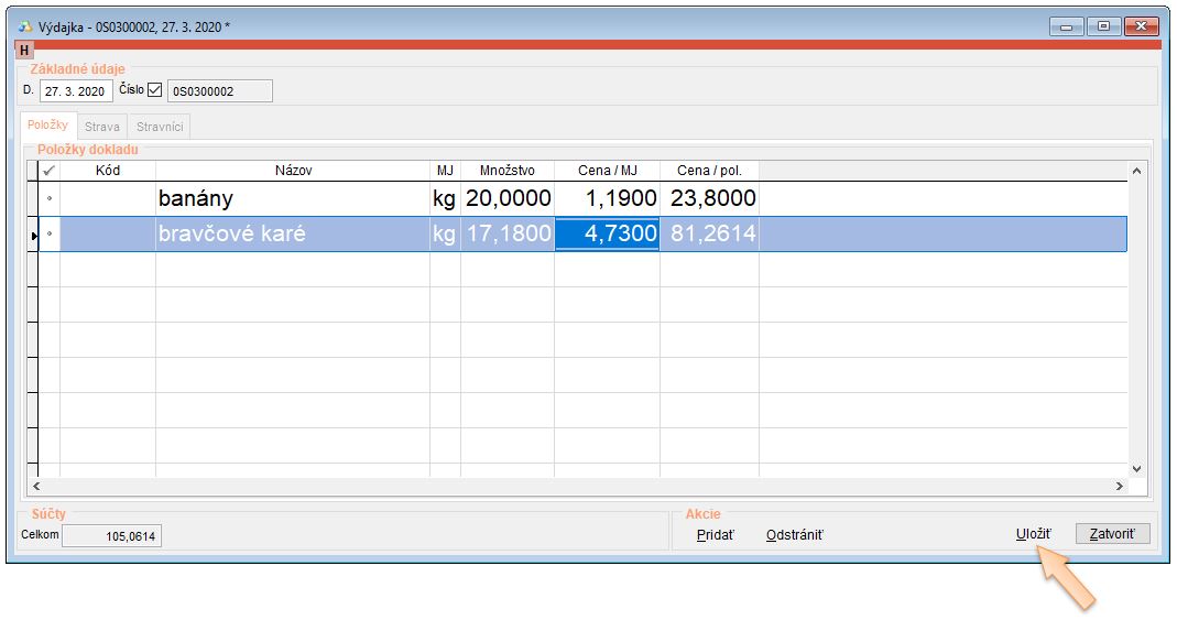 - Doplňte položky vydané zo skladu tlačidlom Pridať.