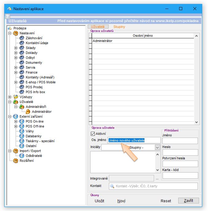 - Vyplňte "Os. jméno" uživatele, Iniciály, případně skupinu uživatelů.