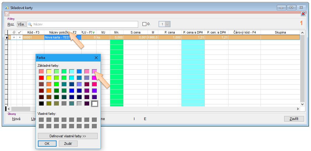 Při kliknutí na název některého ze sloupců pravým tlačítkem myši se zobrazí paleta barev a je možné si tak nadefinovat barvu daného sloupce.