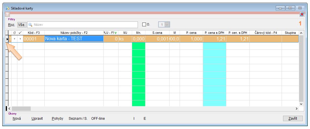 Velikost písma je možné upravovat rovněž ve všech formulářích aplikace. Stačí se v seznamu postavit myší mezi první a druhý řádek a do úplně prvního sloupce před označení typu skladových karet. Zobrazí se posuvník se šipkou směrem nahoru a dolů. Pomocí něj je možné výšku řádku zvětšit, čímž se automaticky upraví velikost písma.