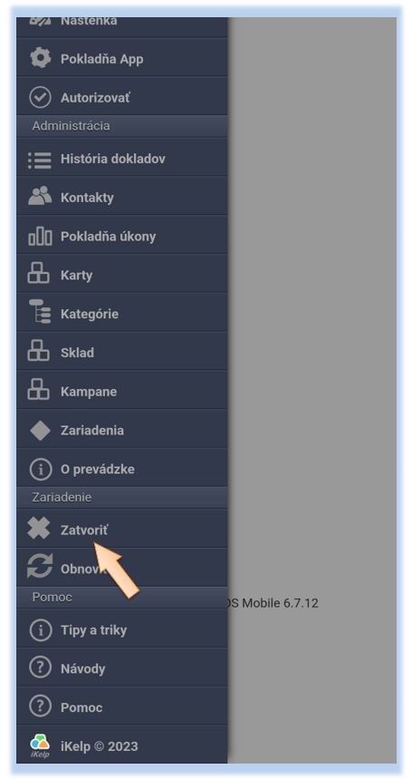 - Spustite aplikáciu POS Mobile na zariadení so systémom Android.