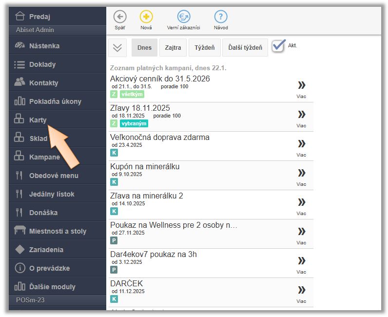 1. Kliknite na možnosť Karty v menu aplikácie.