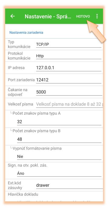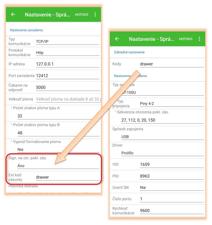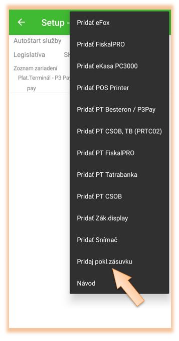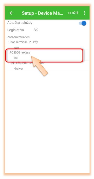 Zariadenie na otváranie zásuvky - definovanie zariadenia v iKelp POS Mobile (pre android)