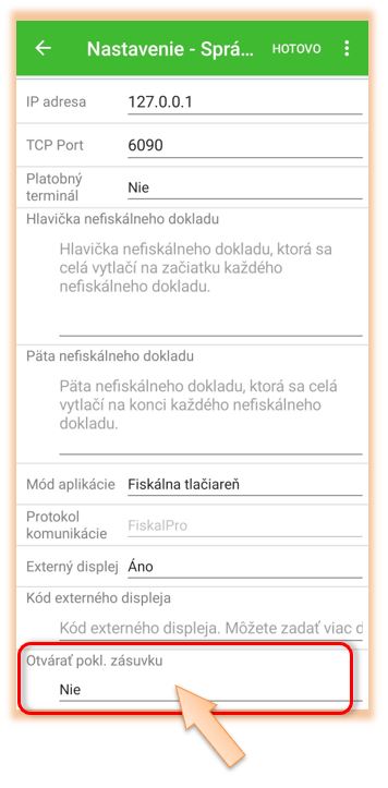 Gratulujeme, ak už máte zariadenie nakonfigurované, po ukončení predaja cez dané pokladničné zariadenia sa bude automaticky otvárať aj pripojená pokladničná zásuvka.