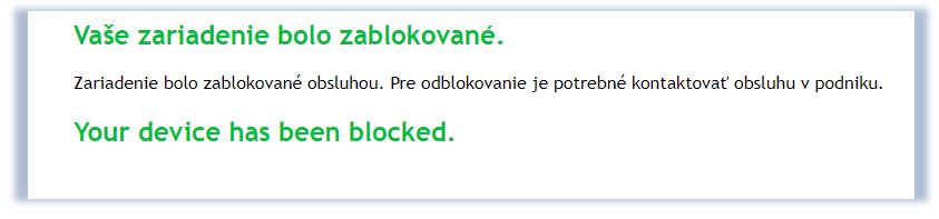 Zoznam blokovaných zariadení, ktoré pracovali s aplikáciou a boli obsluhou zablokované.