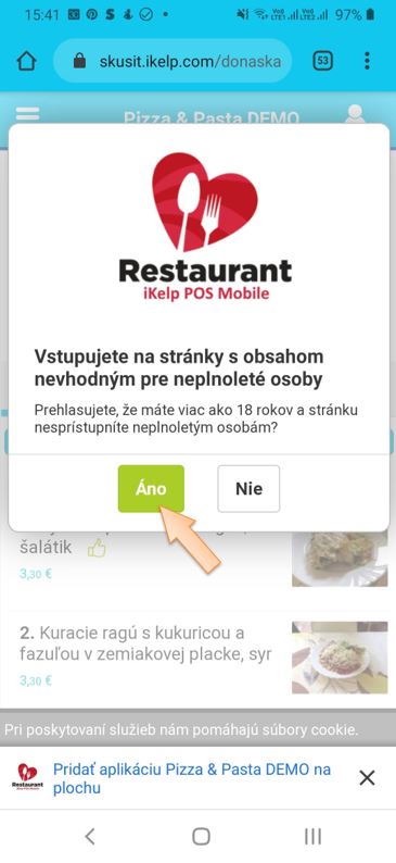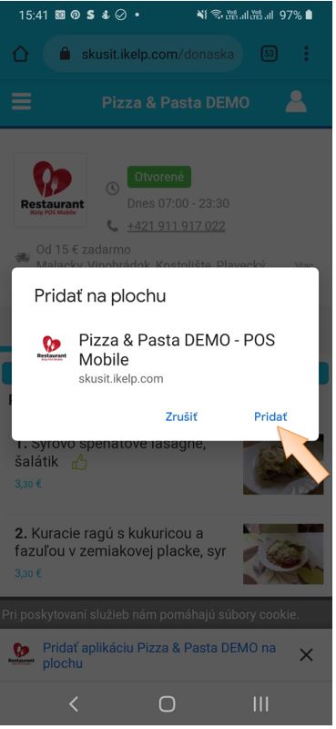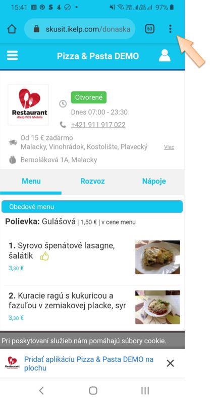 Keďže ide o webovú aplikáciu, nie je potrebné si nič sťahovať, ale pomocou jednoduchej ikony na obrazovke bude mať váš zákazník hneď dostupné online objednávanie.