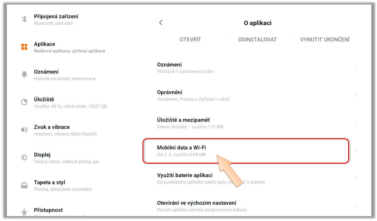 - Prejdite v menu do Mobilné dáta a WiFi.