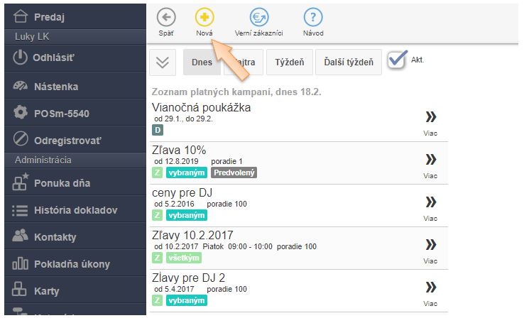 1. Kliknite v menu aplikácie na možnosť Kampane.