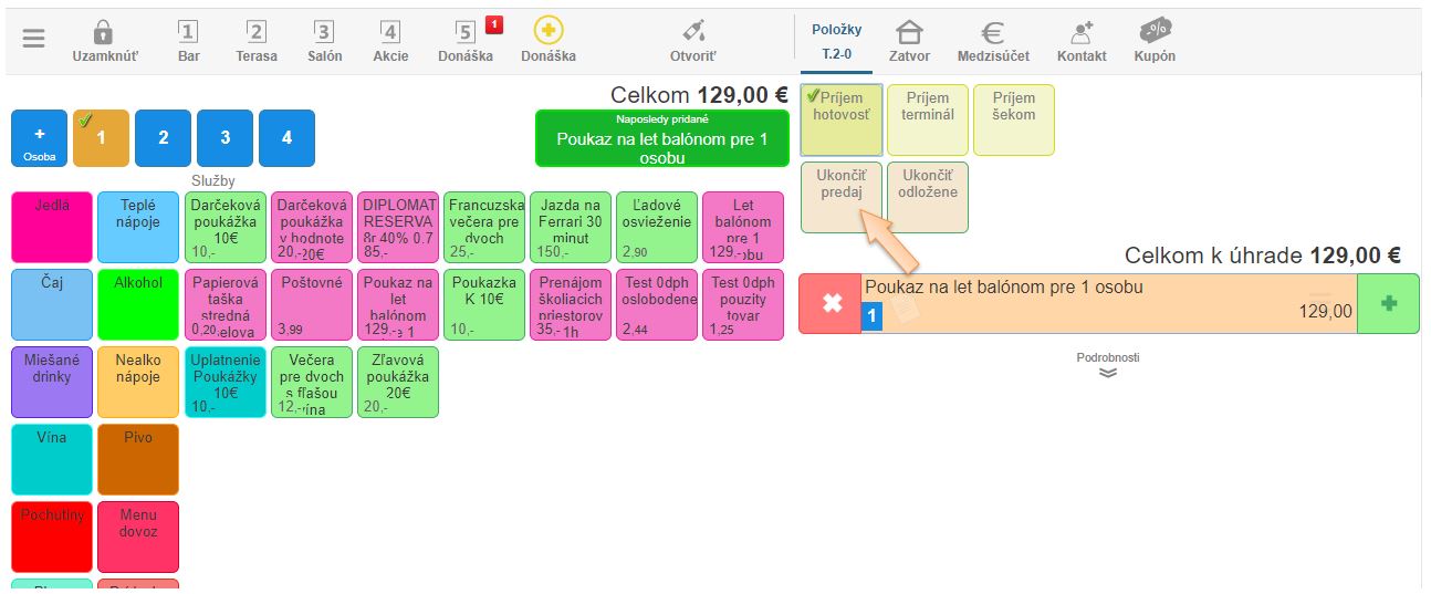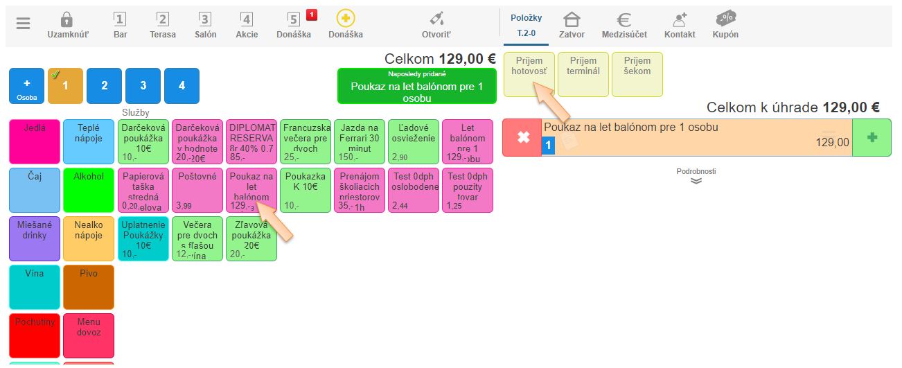 1. V predaji vyberte kartu - poukaz , ktorý sí zákazník kupuje.