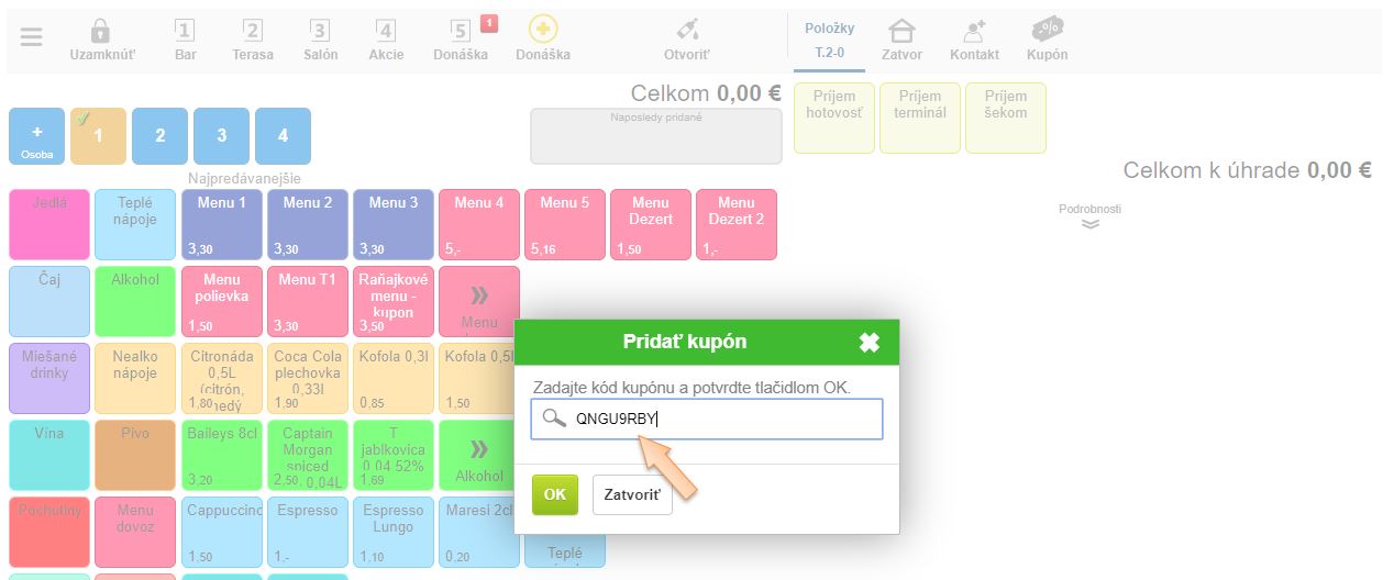2. Zadajte kód kupónu a kliknite na tlačidlo OK.