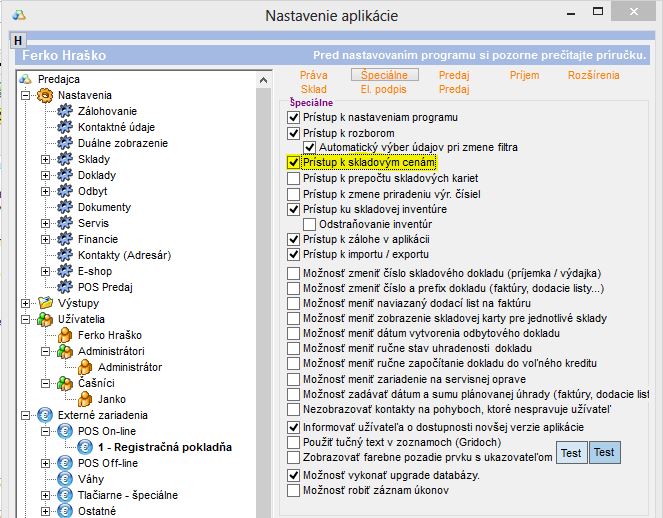 2. V ľavej časti okna, v strome jednotlivých nastavení vyberte možnosť Užívatelia, danému užívateľovi/skupine nastavte.