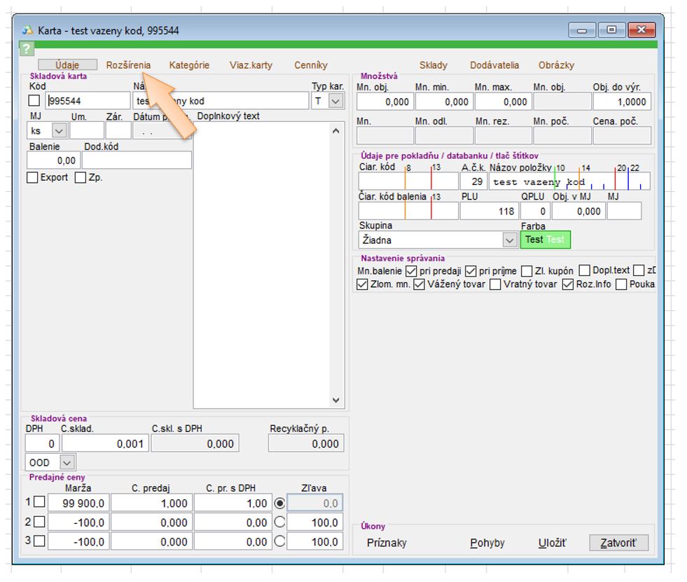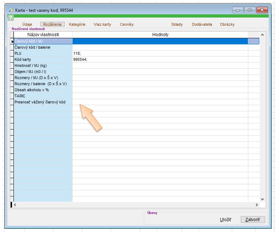 - 27 - hodnota definuje, že sa jedná o vážený tovar. (Aby aplikácia vedela správne rozpoznať, že sa jedná o vážený tovar, je potrebné tento kód nastaviť aj v aplikácii. Nastavenie je potrebné definovať v nastaveniach v časti Sklady -> Karty, aktivovať nastavenie "Tvoriť EAN z PLU formátom".)