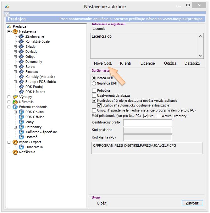 Vytvorenie nového obdobia (databázy) v aplikácii iKelp Predajca