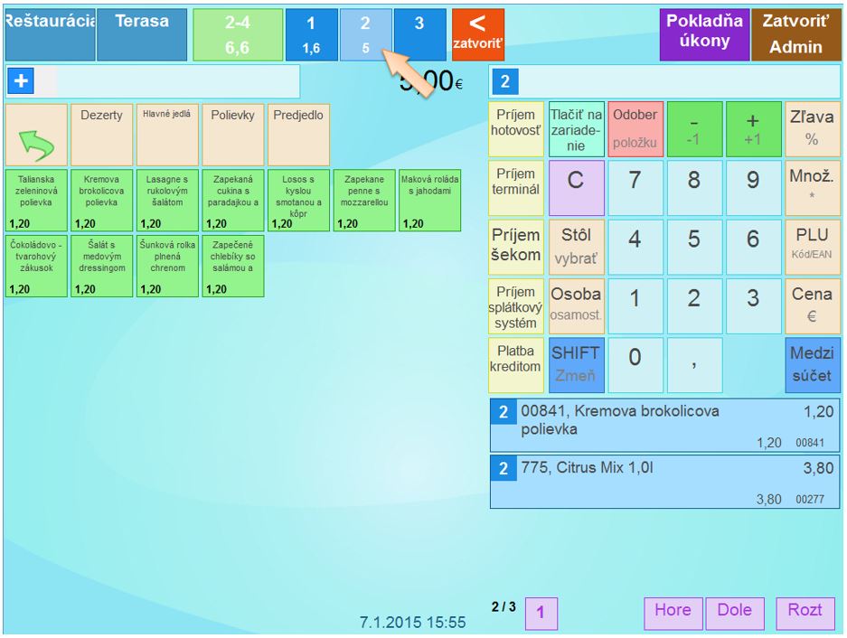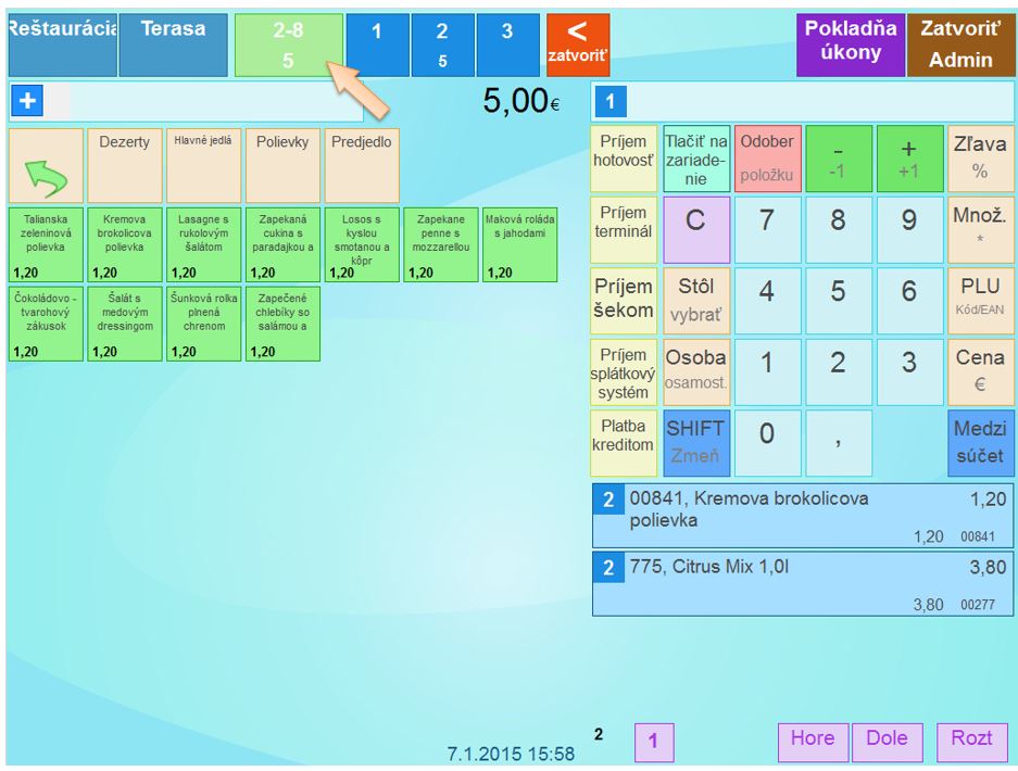 Potreba rozdelenia otvoreného účtu sa používa výnimočne a najčastejšie v prípade, že si osoba presadá na iný stôl a pokračuje v otvorenom účte. Pozor, nemýlte si presun položiek osoby z rozúčtovaného dokladu s presunom celého účtu na iný stôl. Jedná sa o odlišnú situáciu a postup je popísaný v návode Dotykový predaj - Presun účtu na iný stôl.