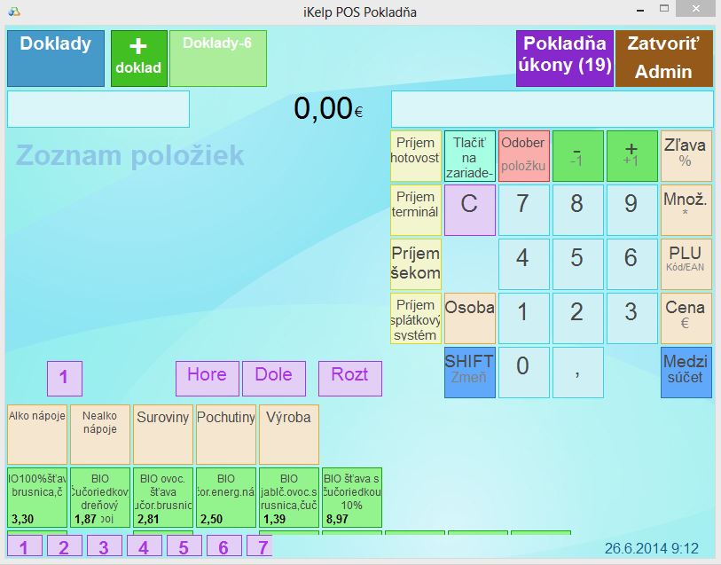 Pri vytváraní skladových kariet ste si vytvorili kategórie, ktoré sa v dotykovom rozhraní aplikácie iKelp Predajca zobrazovať majú ako napr. alko nápoje, nealko nápoje, pochutiny ... Vy si však vediete evidenciu aj rozlievaného alkoholu a z tohto dôvodu máte vytvorené pomocné kategórie s názvom výroba a suroviny. Tieto ale nechcete aby sa v rozhraní predaja obsluhe zobrazovali.