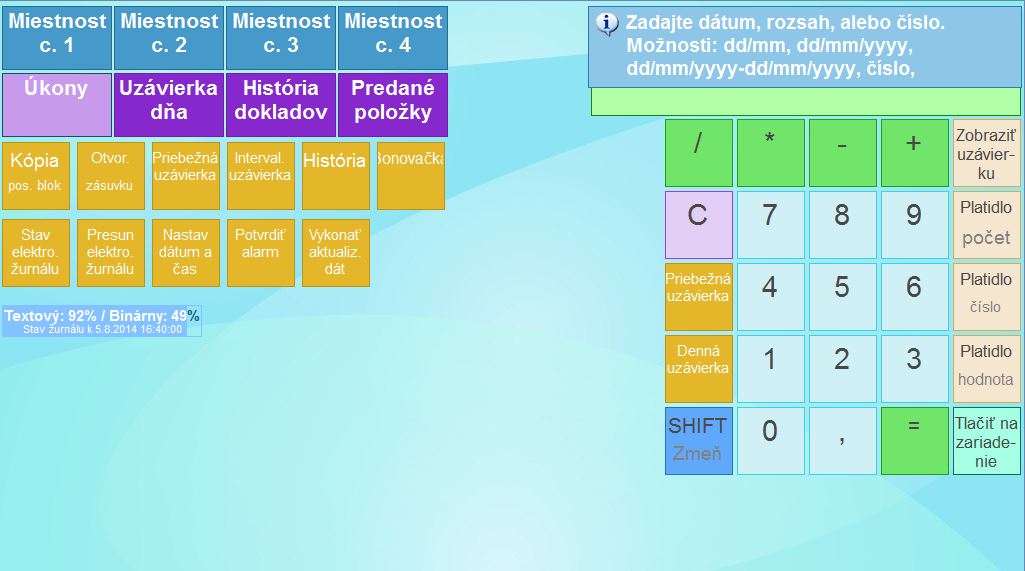 Vykonanie uzávierky v dotykovom rozhraní predaja