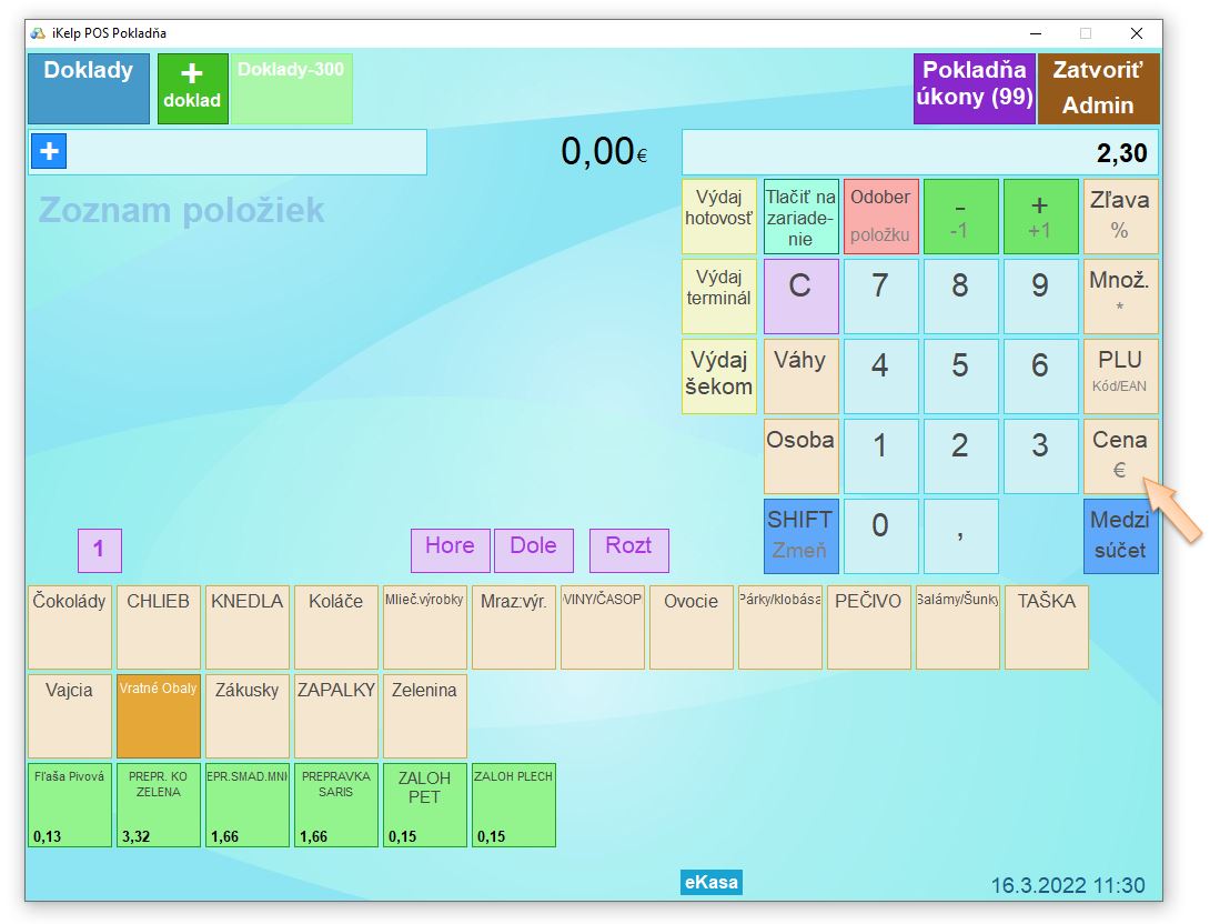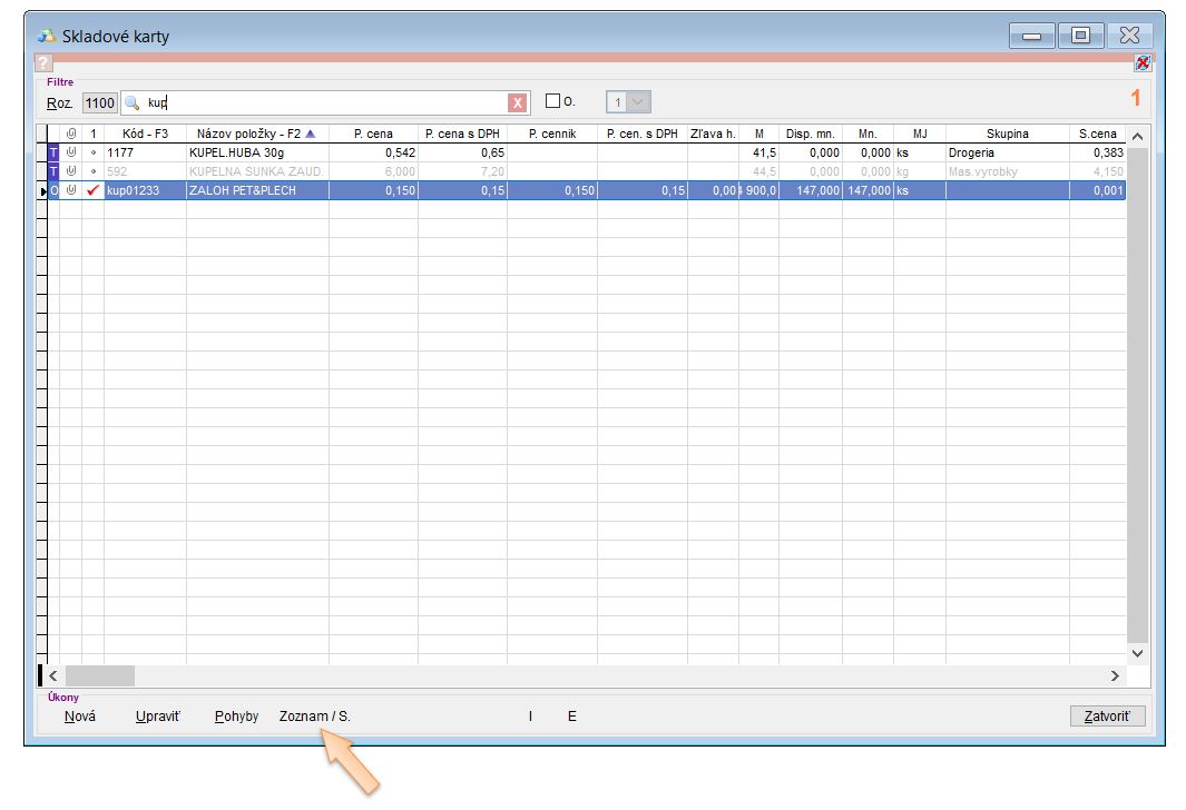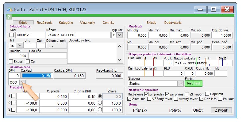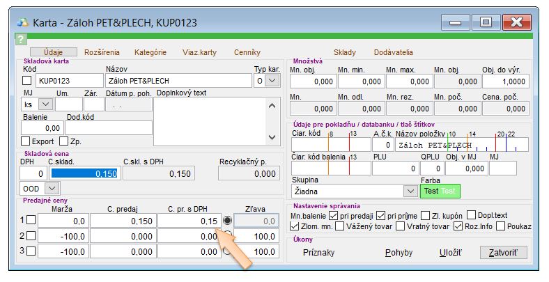 • Zadajte skladovú cenu C. sklad a predajnú C. predaj 0,15€.