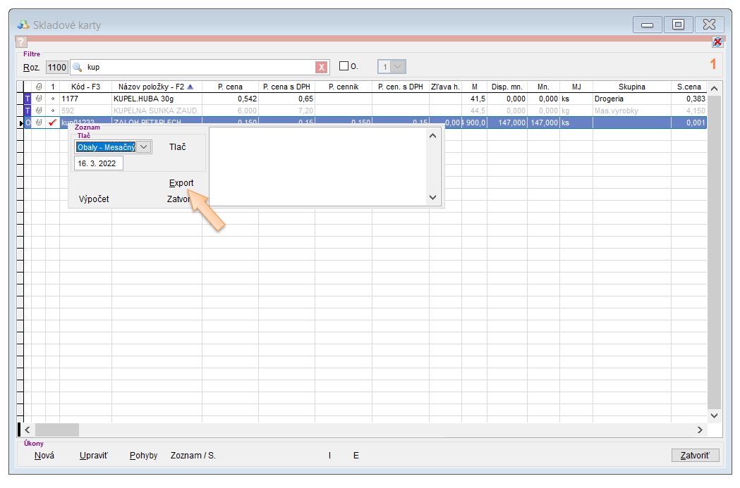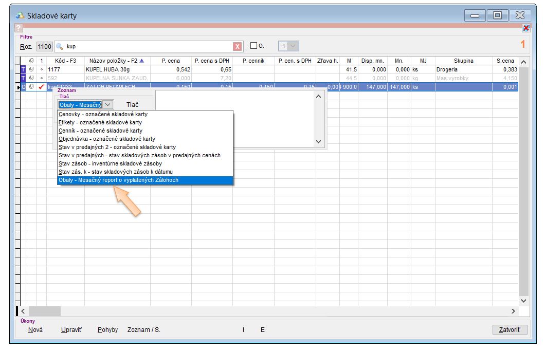3. Vyberte z ponuky možnosť Obaly - Mesačný report o vyplatených zálohách.