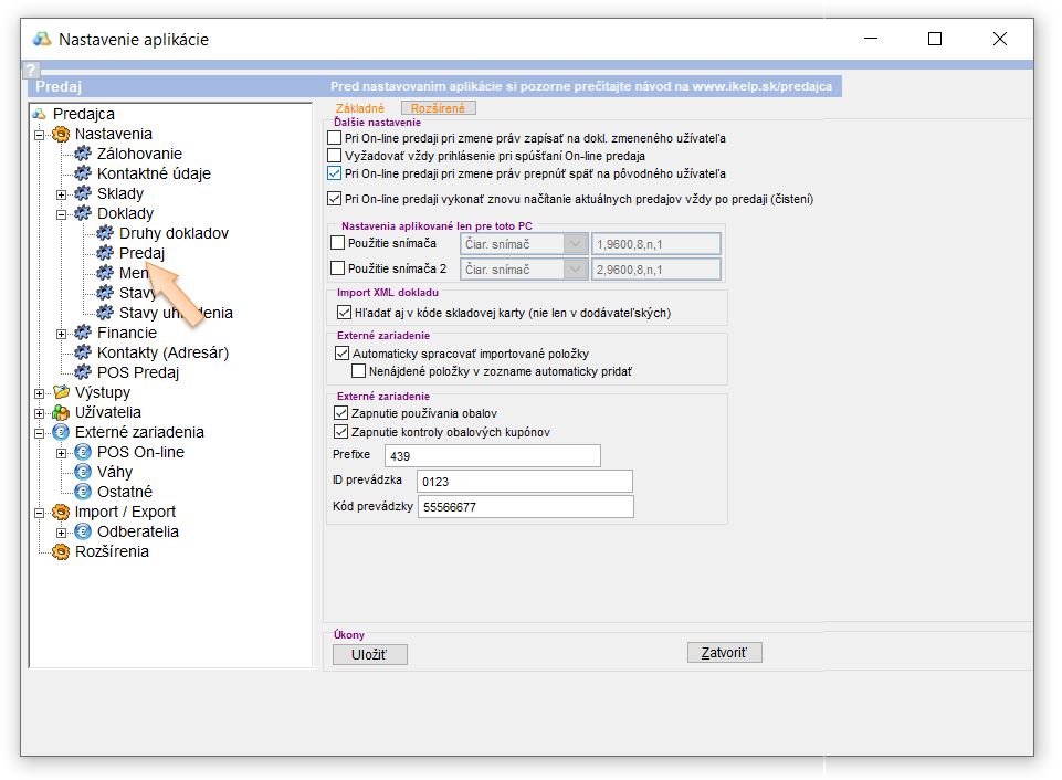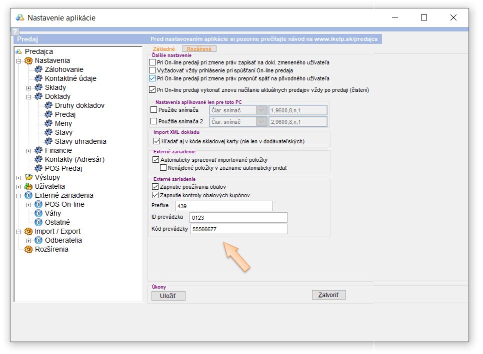 3. Prefixy - používajú sa na identifikáciu kupónu. Kód začínajúci nadefinovaným prefixom sa po zadaní začne vyhľadávať v zozname už použitých kupónov kvôli duplicitnému použitiu. Prefixov je možné definovať viac, ak sa používa viacero skenovacích zariadení. Potom sa oddeľujú bodkočiarkou.