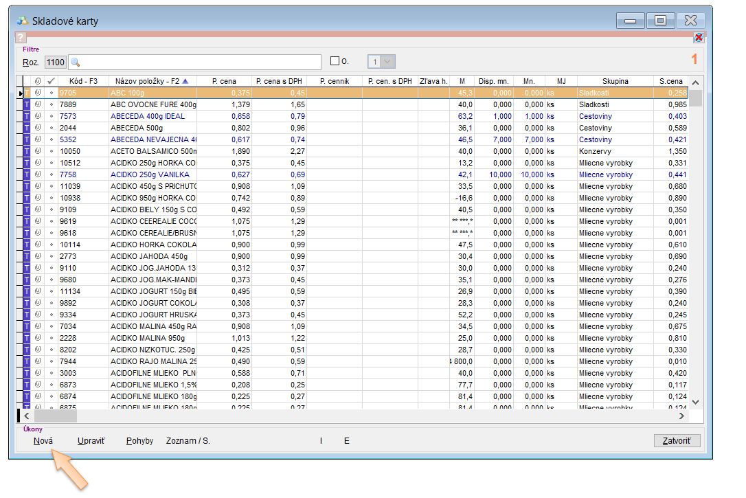 • Kliknite na tlačidlo Nová v zozname skladových kariet.