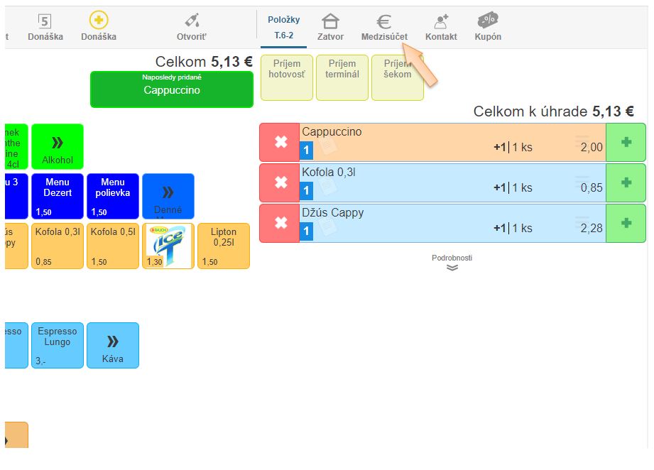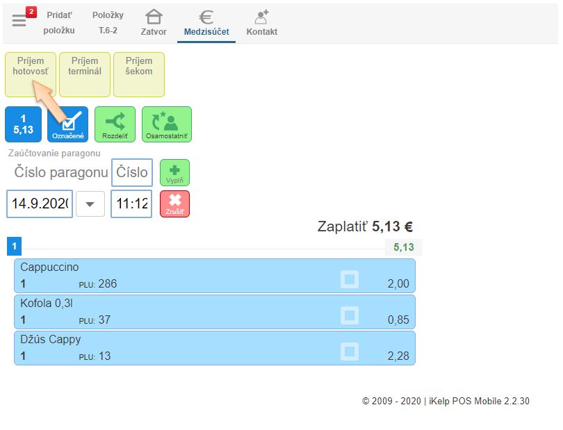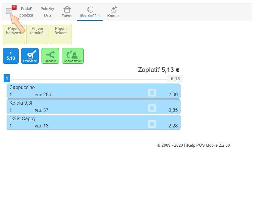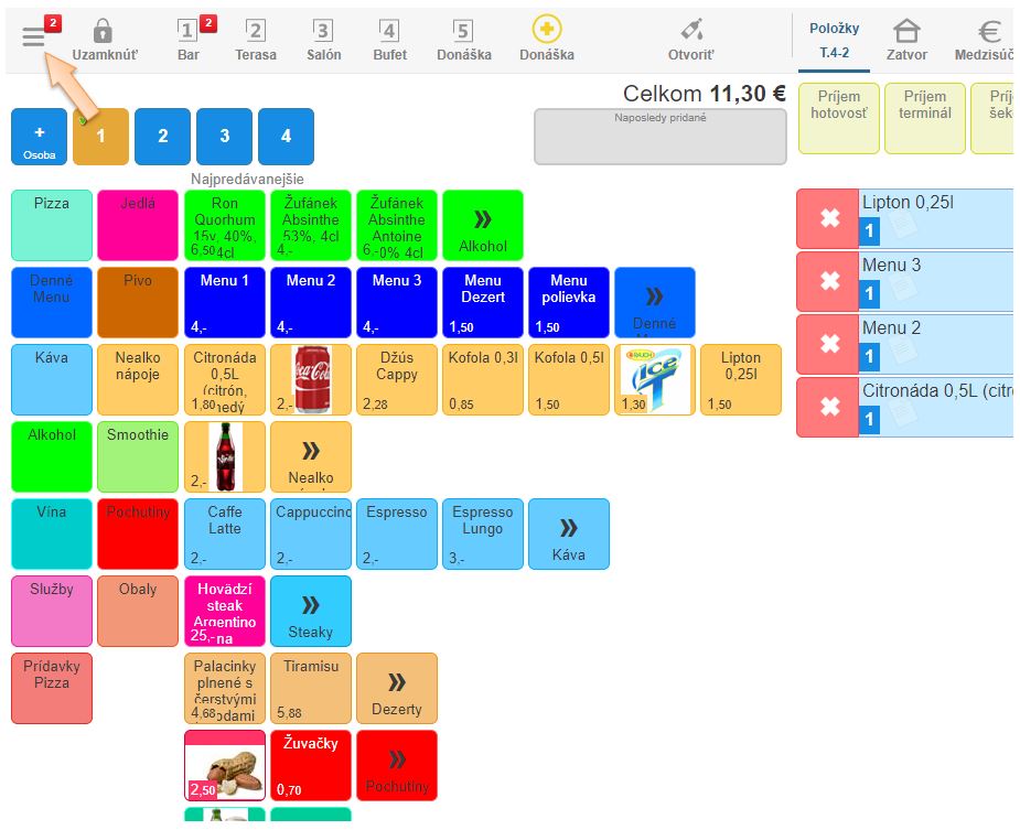 2. Otvorte si stôl a naúčtujte objednávku zákazníka.