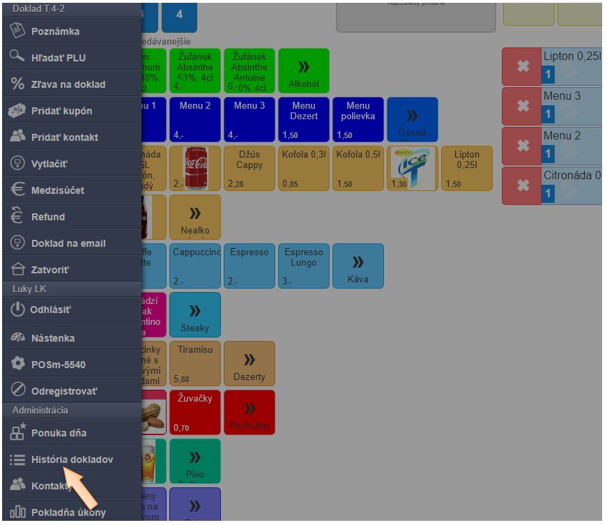 Ak nefunguje ani systém, je potrebné vystaviť paragón a následne položky doúčtovať s doplnením čísla paragónu.
