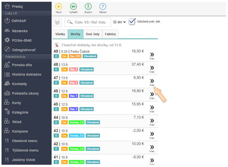 2. Vyhľadajte požadovaný doklad a kliknite na možnosť Viac.