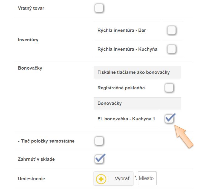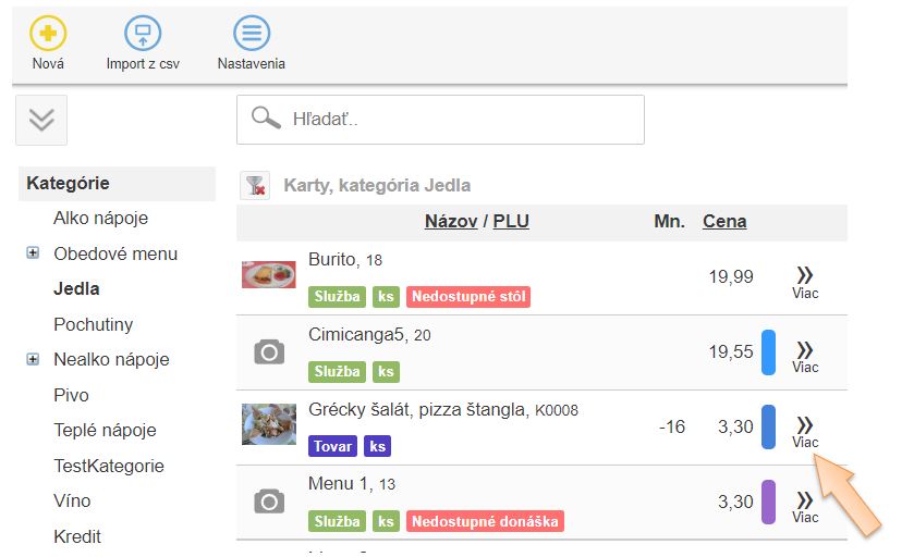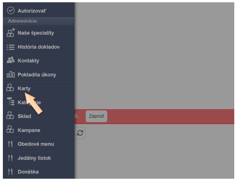 Definovanie kariet pre zobrazovanie na bonovačke v kuchyni