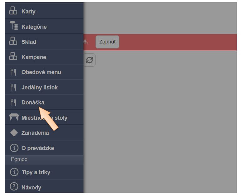 1. Kliknite v menu aplikácie na možnosť Donáška.