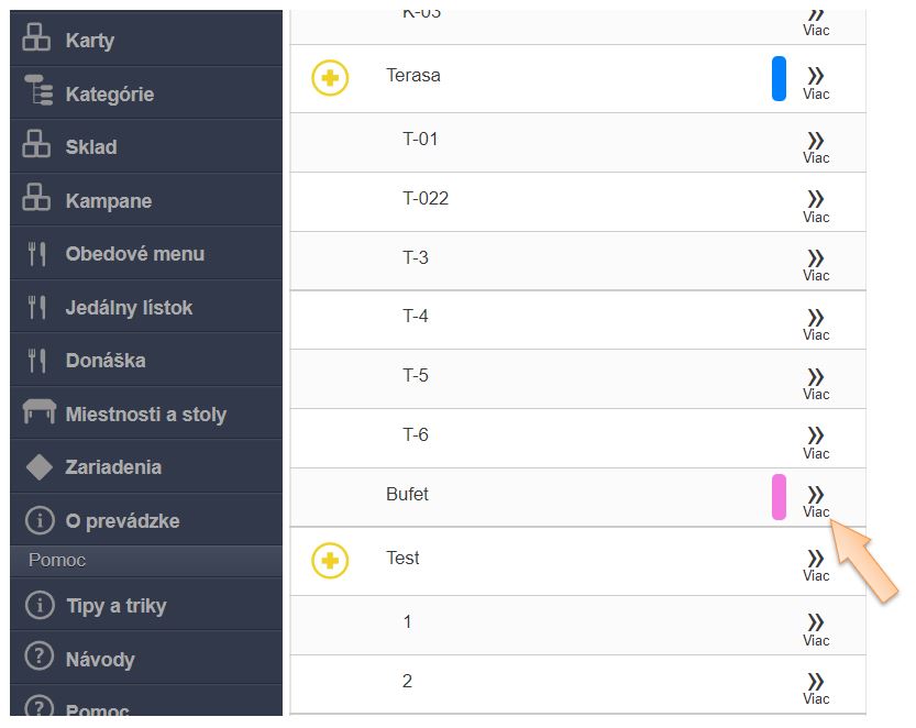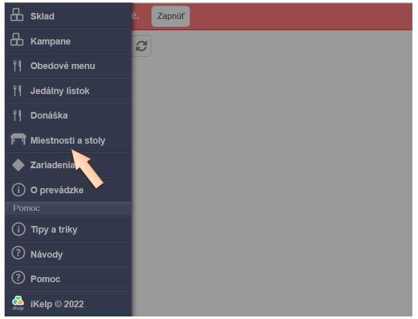 1. Kliknite v menu aplikácie na možnosť Miestnosti a stoly.