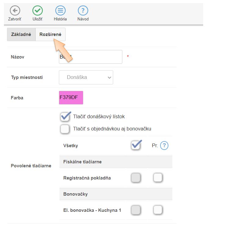 3. V záložke Rozšírené je vyzdvihnutie objednávok preddefinované ako Výdajné okienko.