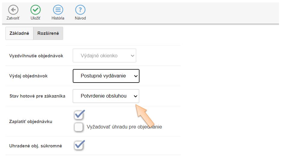 • Výdaj objednávok - objednávky je možné vydávať čiastkovo, alebo až keď je komplet pripravená. Toto nastavenie závisí od vašich preferencií a nastaveného spôsobu správy objednávok na prevádzke.