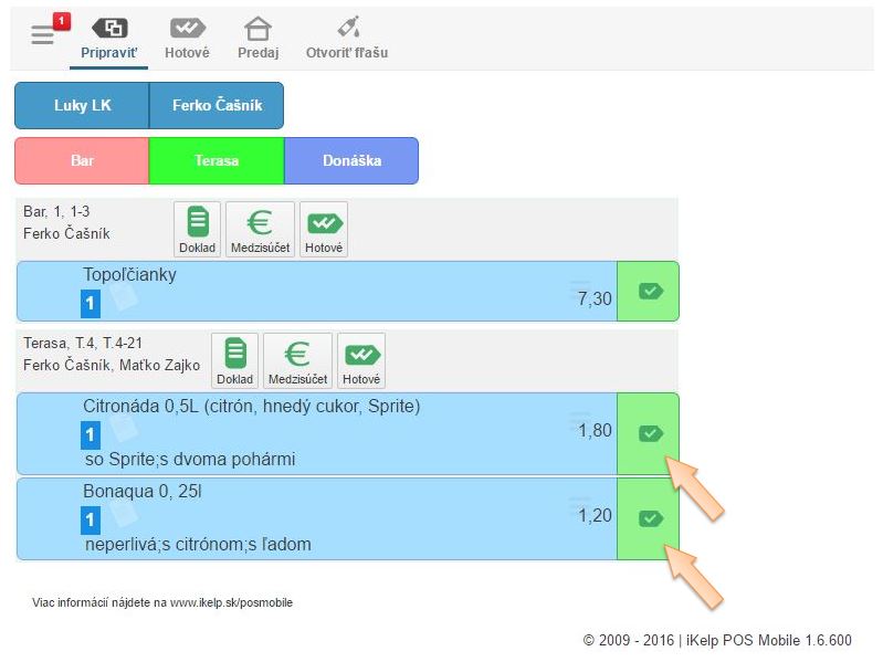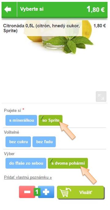 Doplnenie voliteľných vlastností jedál a nápojov pri objednávaní v iKelp POS Mobile